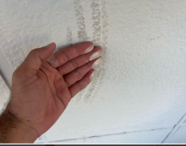 外壁を手で触ったときに白い粉がつく状態をチョーキングといいます。これは塗膜が劣化しているサインであり、塗り替えを検討する目安のひとつです。現地調査では、実際に手で触れて確認することもあります。