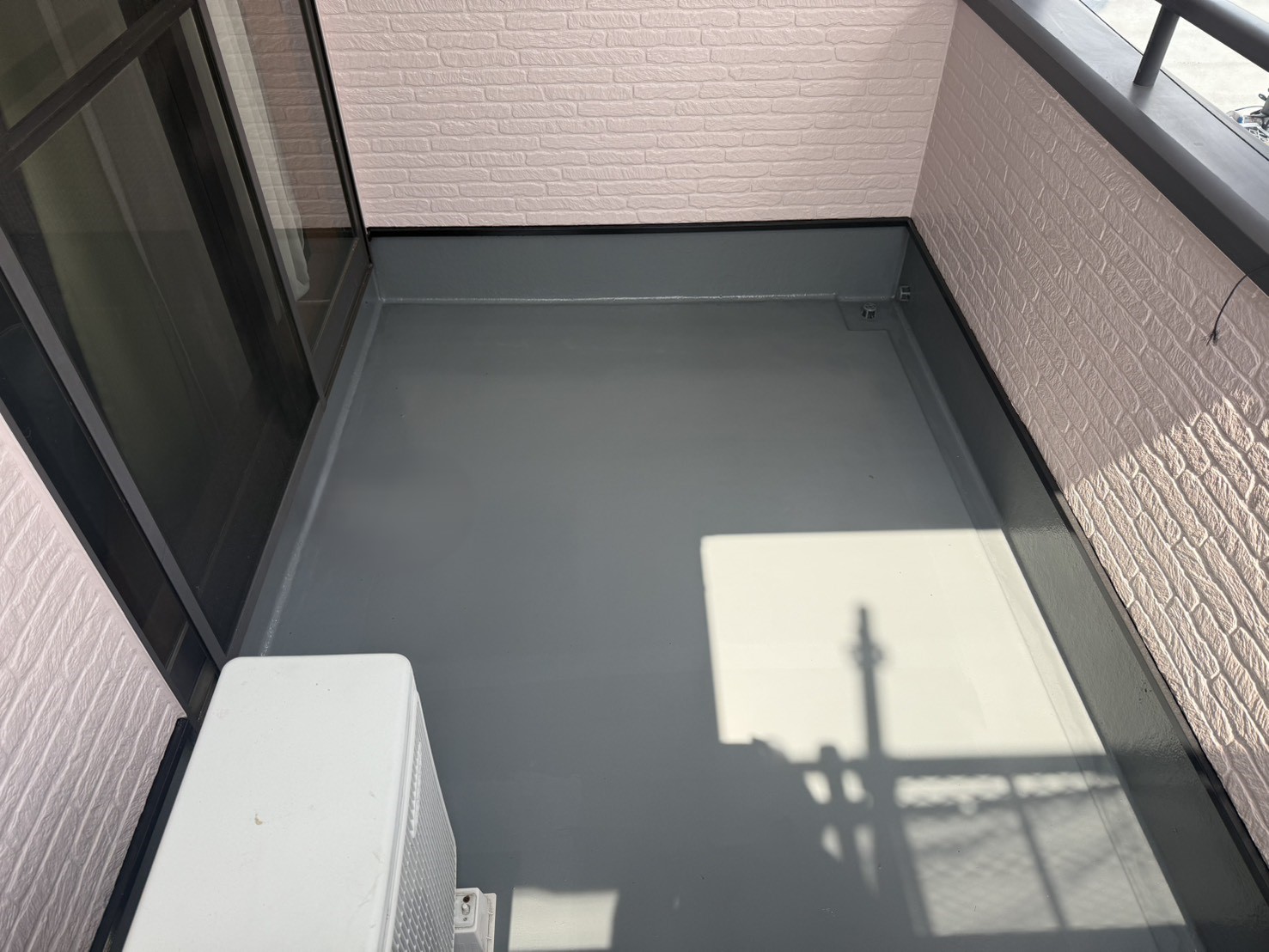 まず下塗りで下地との密着性を高め、その上から上塗りを2回重ねることで、 塗膜の厚みをしっかり確保しました。