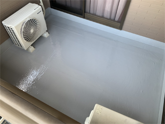 - ベランダ全体の下地補修後、FRP防水層を形成。